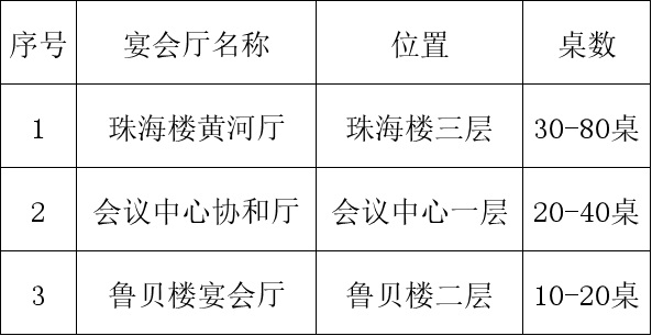 婚宴预订价格:珠海楼黄河厅1890元/席起,会议中心协和厅1690元/席起,鲁贝楼宴会厅1290元/席起,另可(kě)根据喜主要求定制高端酒宴。